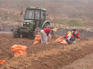 掘り起こしたあと手作業で丁寧に人参を集めていきます。